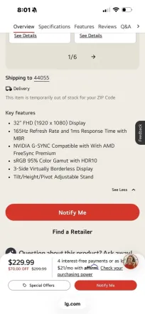 LG 32GN550 Monitors Black 32" 1920x1080 165Hz Used - Good