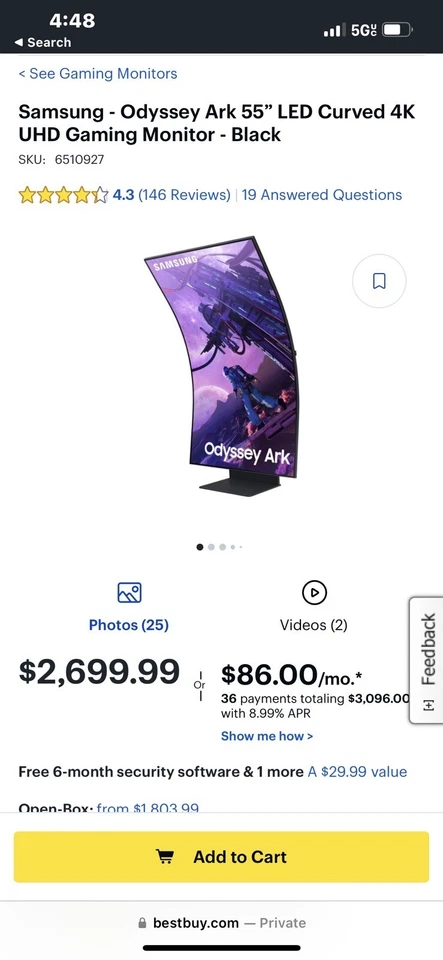 Samsung S55BG970NN Monitors Black 55" 3840x2160 165Hz New